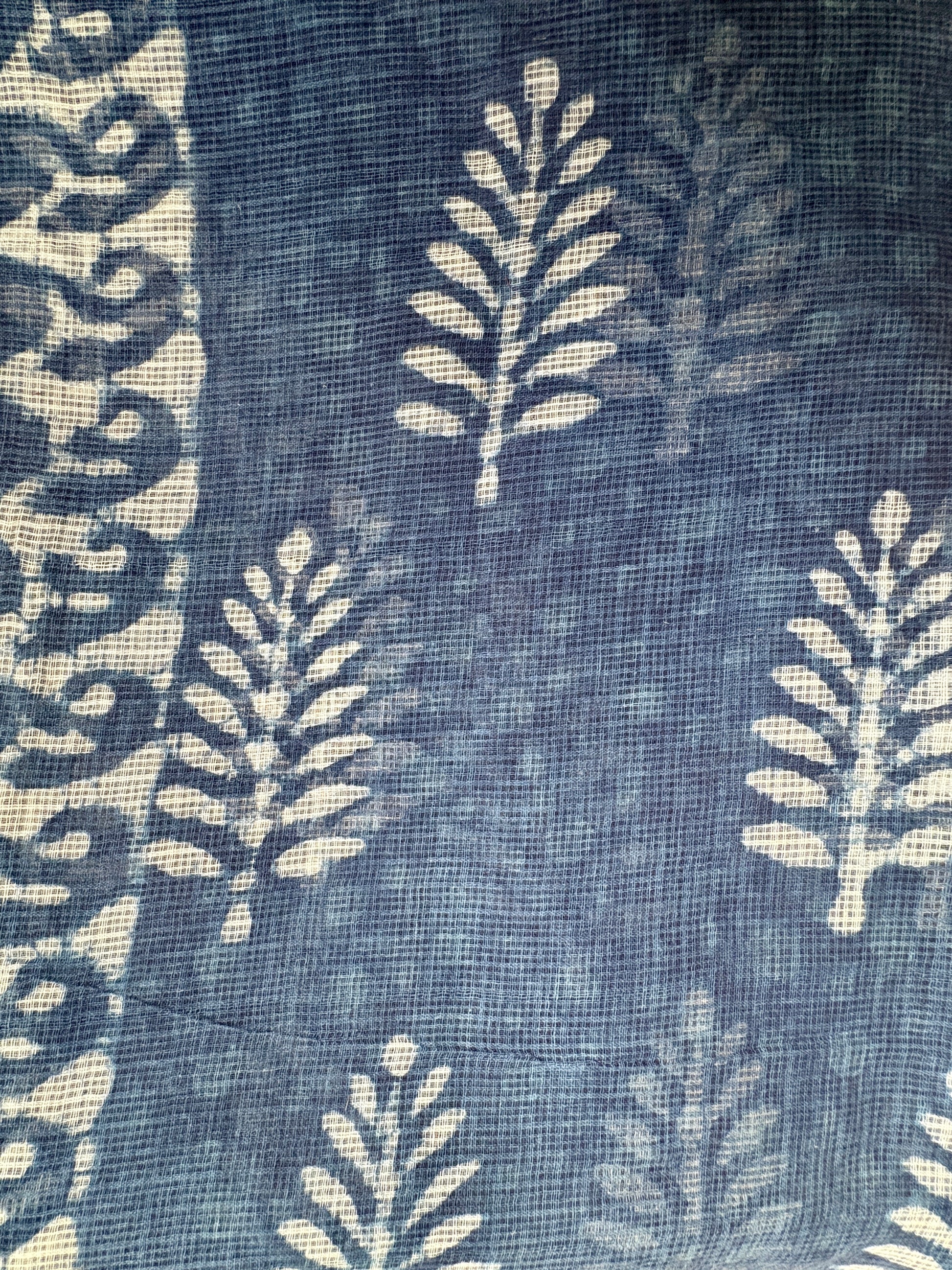 Raahi Kota Doria Indigo Hand Block Printed Saree