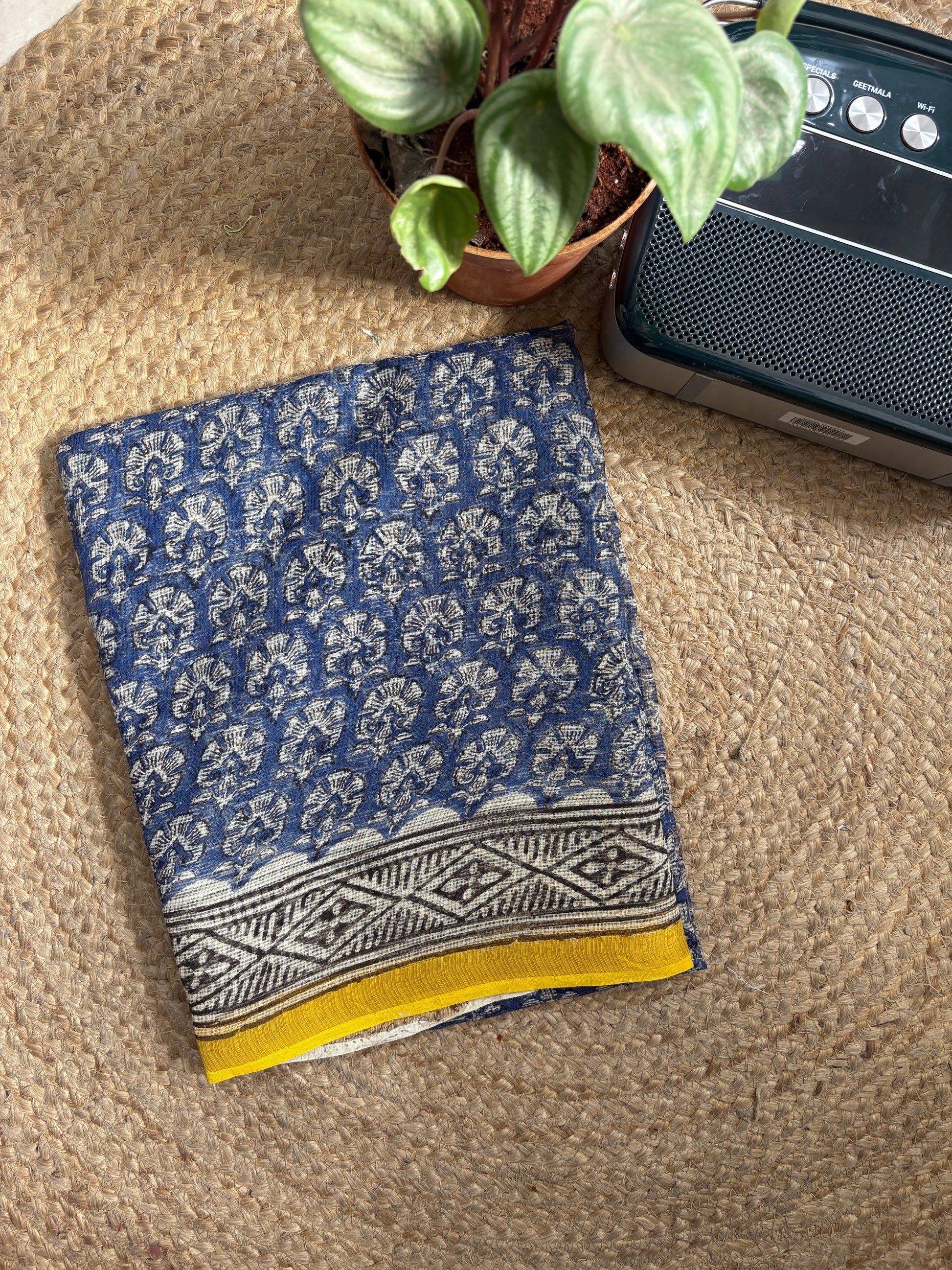 Sakhi Kota Doria Indigo Hand Block Printed Saree